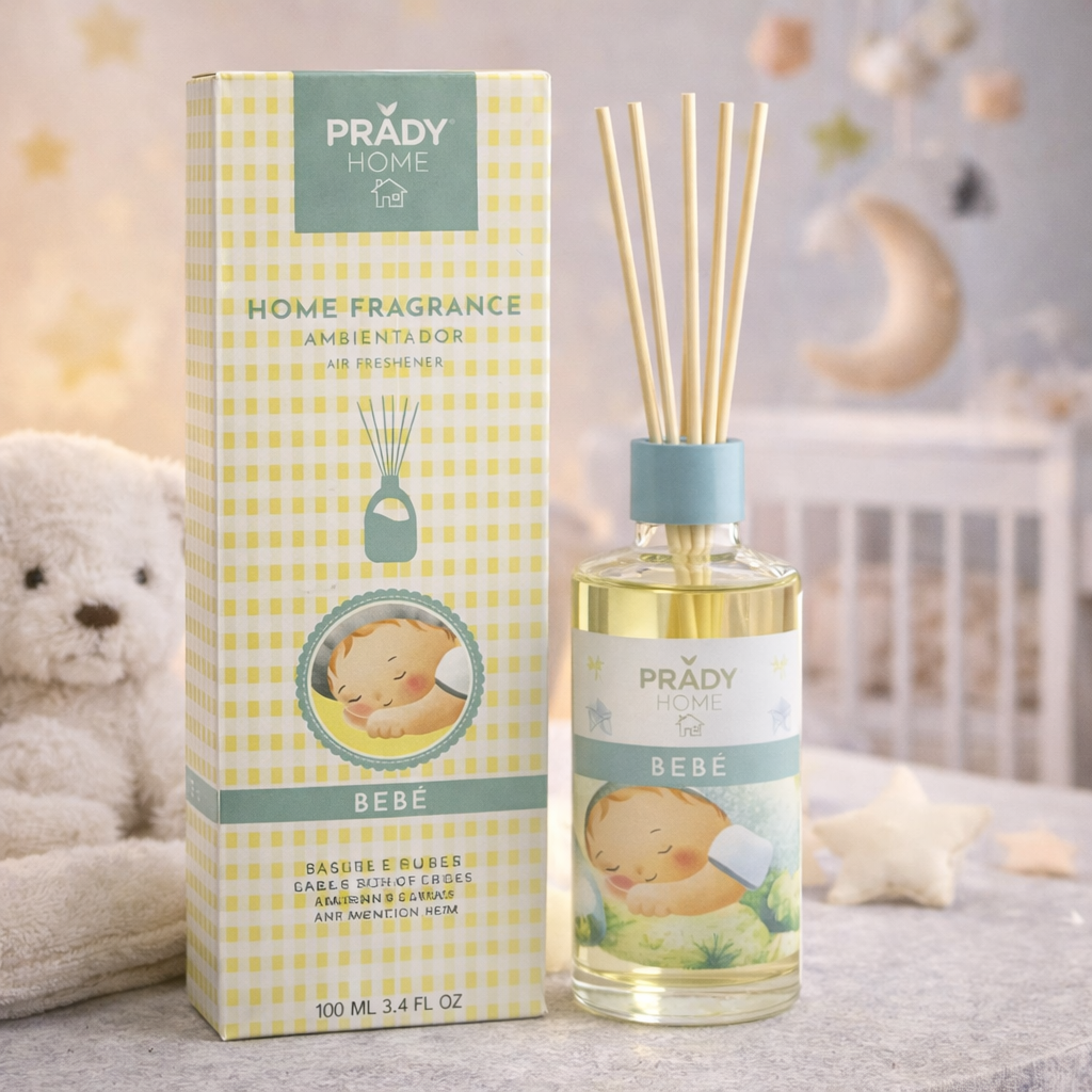 El Ambientador Mikado PRADY Home Fragrance – Bebé está formulado para aportar una fragancia suave, tierna y reconfortante, inspirada en el aroma clásico de bebé. Su perfume ligero crea una sensación de limpieza y calma, ideal para estancias donde se busca un ambiente tranquilo y agradable.