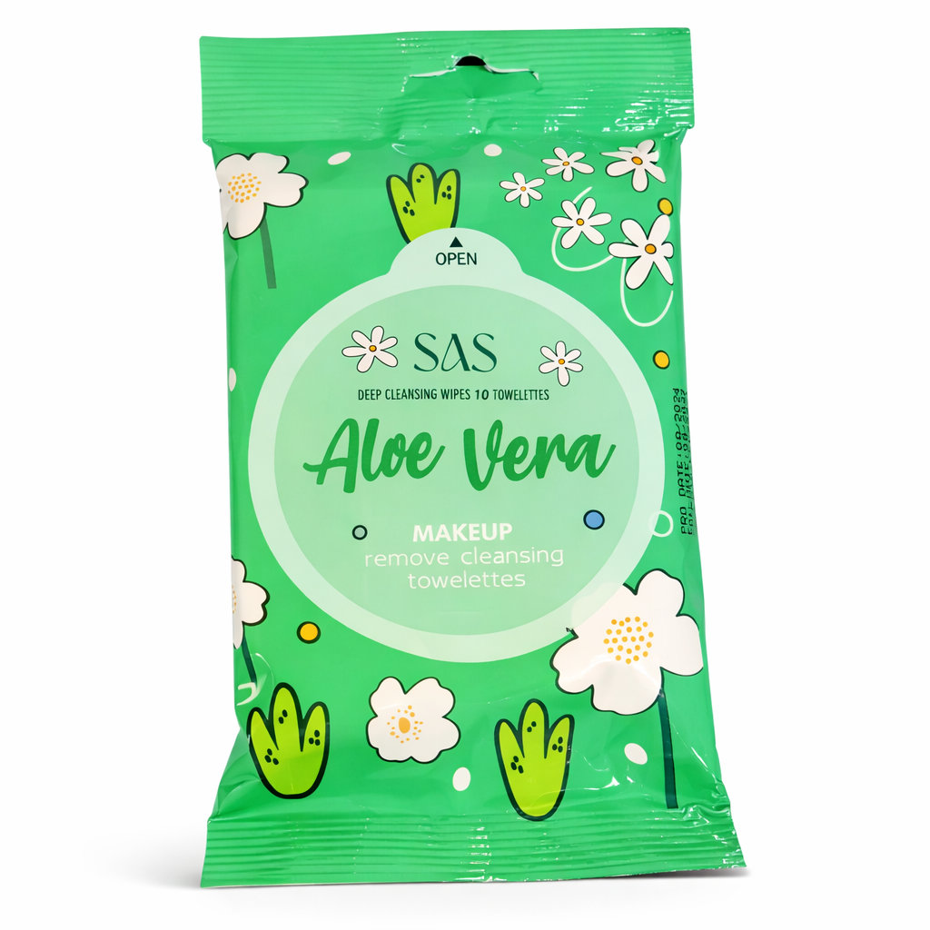 Las toallitas desmaquillantes con aloe vera de SAS están diseñadas para limpiar la piel de forma práctica y rápida, eliminando maquillaje e impurezas en un solo paso. Su fórmula suave ayuda a dejar la piel fresca, limpia y con una sensación de confort, ideal para el uso diario. Perfectas para llevar y usar en cualquier momento gracias a su formato compacto.